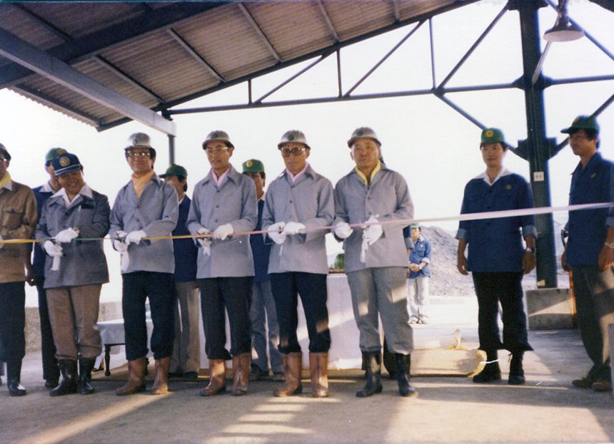 삼천리는 82,645㎡(25,004평)의 부지를 매입해 1976년 3월 1일 공장 건설에 착수했다. 그리고 착공 약 8개월 만인 1976년 11월 7일 준공한 후 2주일간의 시험가동을 거쳐 11월 21일 상업생산을 시작했다. 이듬해인 1977년에는 정선시설 1기와 화로 2기, 건조기, 핀크러셔, 성형기 각 1기의 설비를 증설하고 컨베이어 시스템을 설치하는 등 공장을 확장했다.