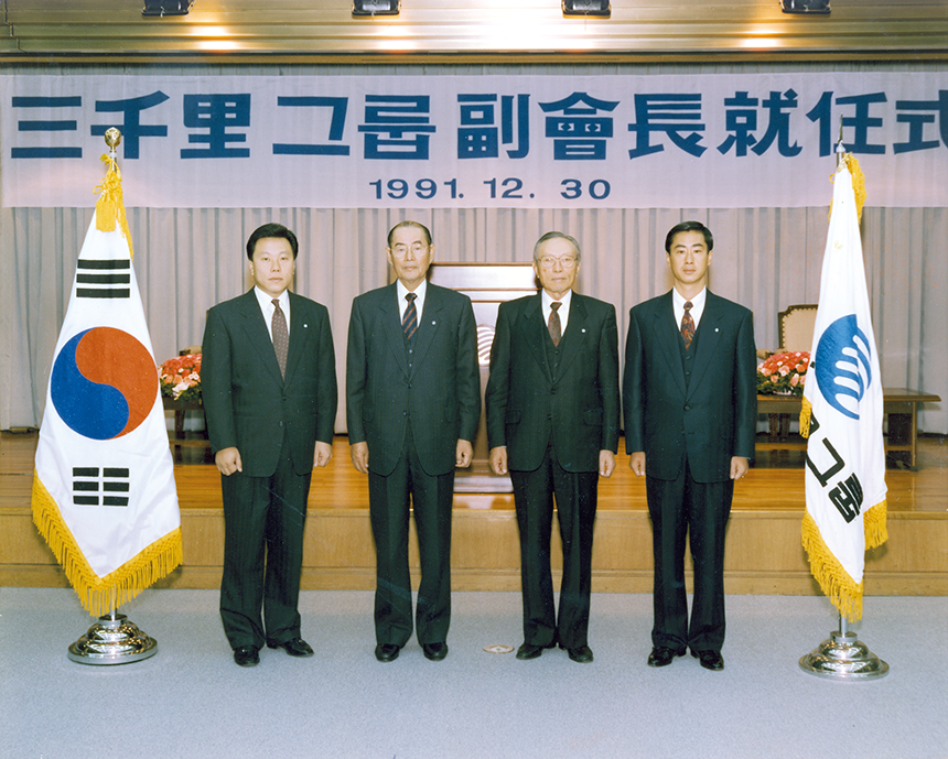 최고경영층 인사에도 변화가 생겼다. 1989년 7월 7일 이장균 선대회장을 명예회장으로 추대하고, 인현철 사장을 회장으로, 정우진 부사장을 제4대 사장으로 선임했다. 이는 삼천리를 창업해 그룹 규모의 기업으로 성장시킨 창업 1세대가 2선으로 물러나고 새로운 바람을 몰고 올 차세대들이 등장한다는 것을 의미하는 일이었다.