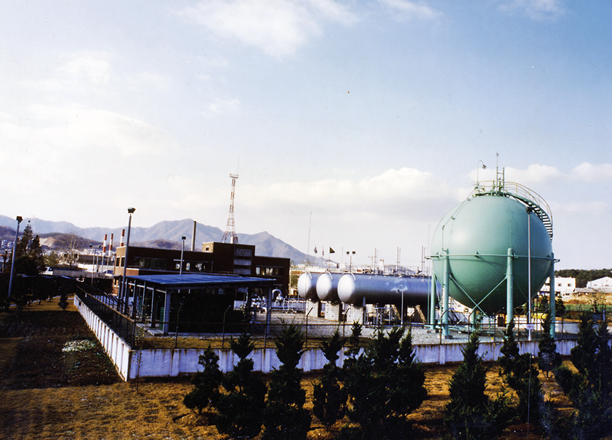 정부는 한국가스공사와 함께 경기도 평택군 포승면에 LNG 인수 및 생산기지를 건설하기로 하고, 1983년 6월 공사를 시작해 1986년 말 1단계, 1987년 7월 2단계 공사를 완료했다. 동시에 평택기지에서 기화·송출한 LNG를 수요처에 공급하는 주 배관로와 도시가스 공급망 건설공사도 병행했다. 평택기지에서 인천화력발전소에 이르는 총연장 98.3km의 주 배관로 공사는 1983년 3월 착공하여 1986년 11월 완공했다. 주 배관로에서 각 도시가스 회사로 연결하는 간선 공급망은 1984년 11월 착공하여 1987년 12월 완공했다. 총연장은 128km에 달한다.