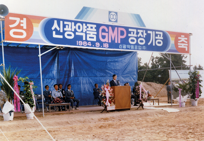 사업개발실은 다각적인 연구 및 조사를 거쳐 제약업 진출을 제안했다. 이에 유성연 선대회장은 제약회사 신규 설립, 외국 제약회사와의 합작, 기존 제약회사 인수 등 여러 방안을 놓고 고민하다가 기존 회사를 인수하기로 하고, 1983년 8월 신광약품을 인수했다. 1949년 6월 설립된 신광약품은 30여 년 동안 영양제, 진통해열제, 진해거담제 등을 생산하는 업계 순위 133위(1982년 기준)의 소규모 제약회사였다.
