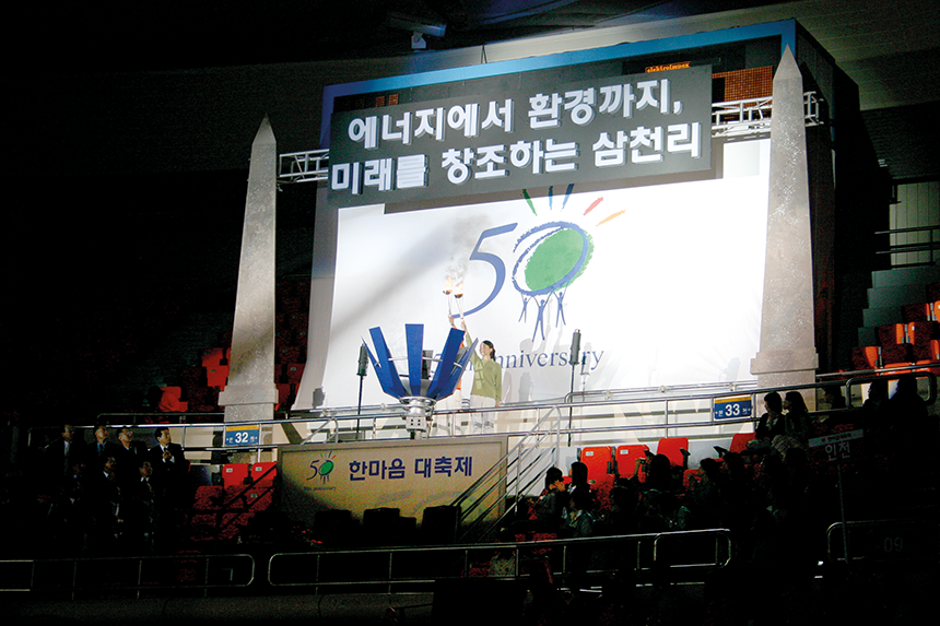 창립 50주년을 맞아 삼천리는 다양한 행사를 열었다. 특히 유성연·이장균 두 창업자의 창업정신을 되새기는 일은 창립 50주년을 기념하는 중요한 행사였다.
