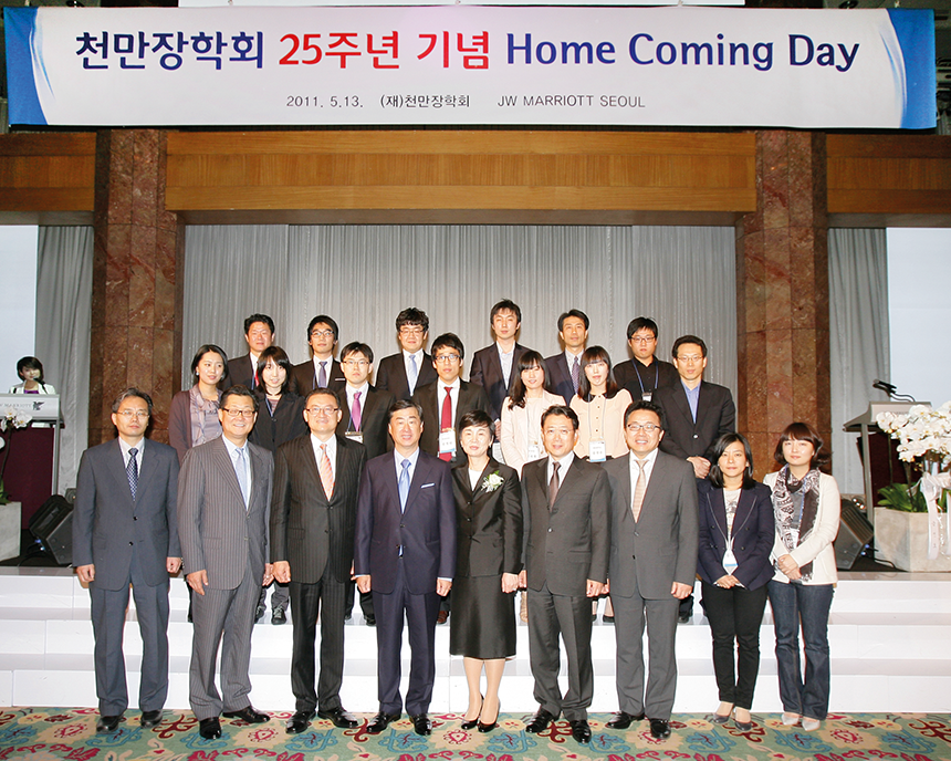 2011년 5월 13일 천만장학회는 서울 JW메리어트호텔에서 처음으로 ‘홈커밍 데이’ 행사를 열었다. 역대 장학생들이 한자리에 모이는 행사이다. 이날 참석한 장학생들은 삼천리가 운영 중인 사회공헌 프로그램 ‘드림 스쿨(Dream School)’에 동참하여 재능기부를 실천하기로 하고 봉사단 발대식을 가졌다.