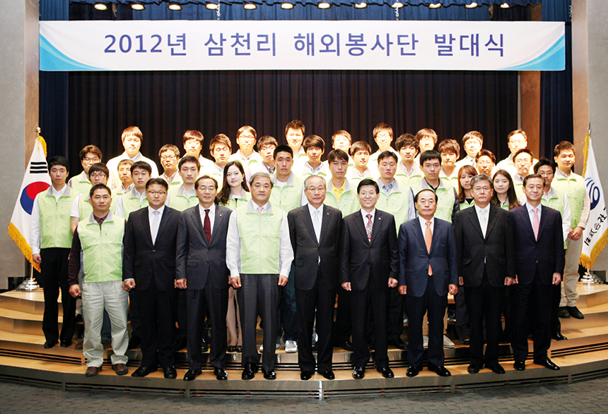 2012년 10월 12일에는 ‘삼천리 해외봉사단’을 발족해 활동을 시작했다. ‘지구촌 이웃에 대한 관심과 나눔의 정신을 실천하고, 건전하고 바른 인성을 함양’하는 데 목표를 두고 발족한 해외봉사단은 2012년 10월에는 베트남, 2013년 10월에는 우크라이나, 2014년 11월에는 캄보디아를 찾아 봉사활동을 펼쳤다. 시설이 빈약한 초등학교를 선정해 도서관과 급식실을 설치하거나 학교시설 개·보수, 유치원 놀이터 조성 등을 실시하고, 일일교사가 되어 직접 학습활동도 벌였다.