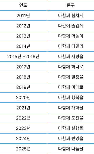 창립 70주년의 해이기도 한 2025년에도 역시 1월 2일 오산 기술연구소에서 시무식을 갖고, 에너지·환경 사업을 필두로 각 계열사가 보유한 사업역량을 강화하고 내실을 다져나가자고 다짐했다. 연간 슬로건으로는 ‘다함께! 나눔을!’을 제시하여, 성장 못지않게 기업의 사회적 책임도 매우 비중 있게 이행해야 한다는 점을 강조했다. 70년 동안 인연을 맺어온 고객의 만족도를 높이고 지역사회 발전에 공헌하여 고객에게서 받은 사랑을 나누는 것을 최우선 순위로 두자는 의지의 표현이었다.